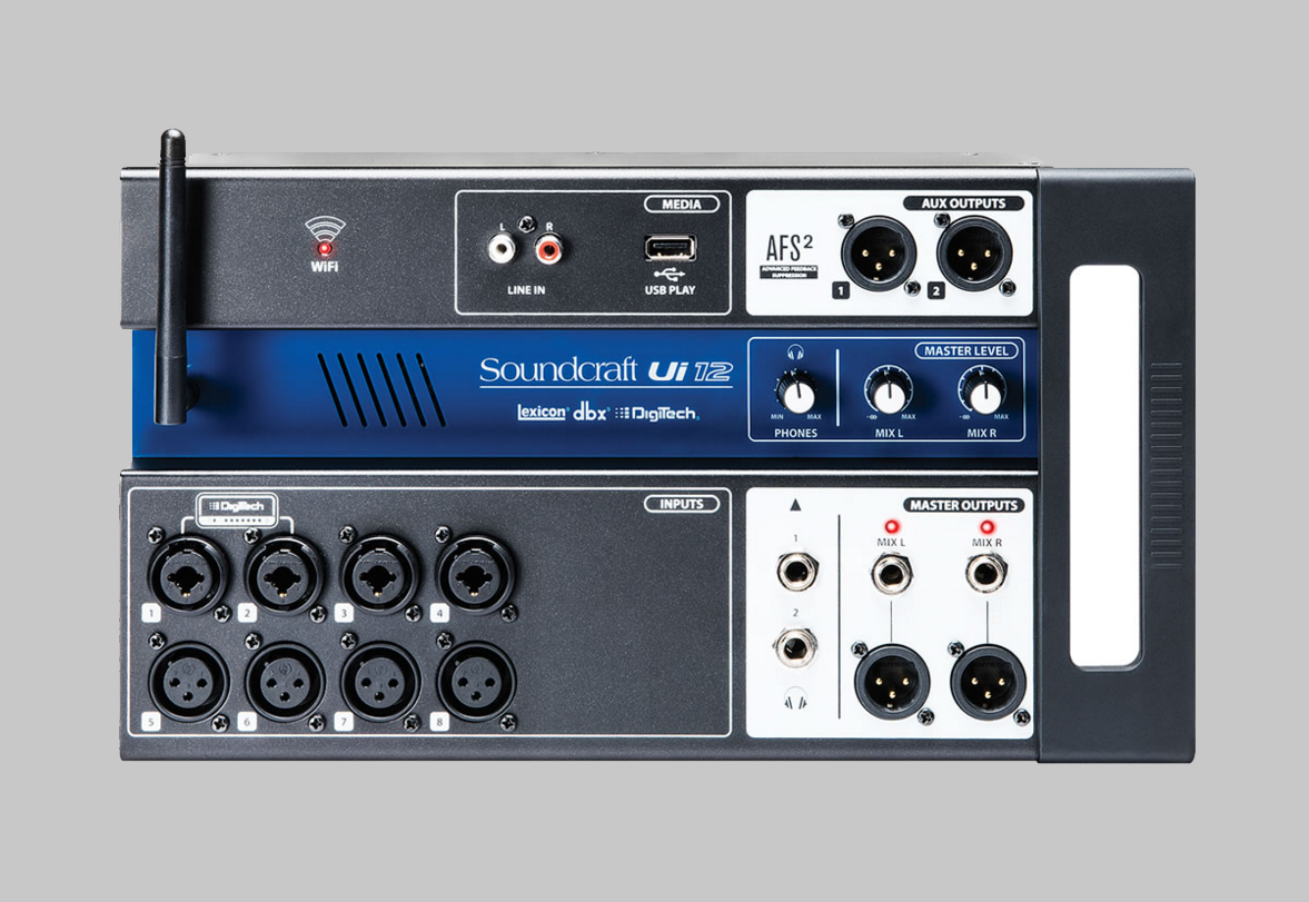 Ui12還配備四路XLR組合麥克風(fēng)/線路輸入、四路XLR麥克風(fēng)輸入、兩個(gè)高阻/裝置輸入通道以及一路立體聲RCA線路輸入。