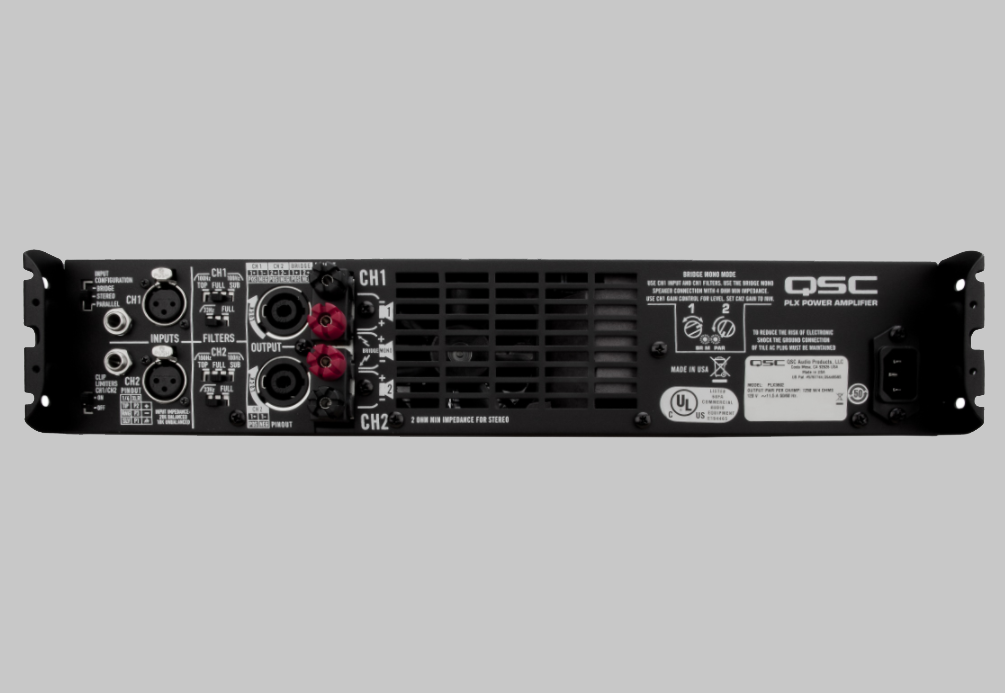 兩個Speakon?NL4輸出連接器提供正鎖定揚聲器連接。上連接器在所有四個電極(通道1:1+,1-;通道2:2+,2-)上提供兩個通道輸出,用于橋接單聲道或用于單電纜連接到雙放大揚聲器。