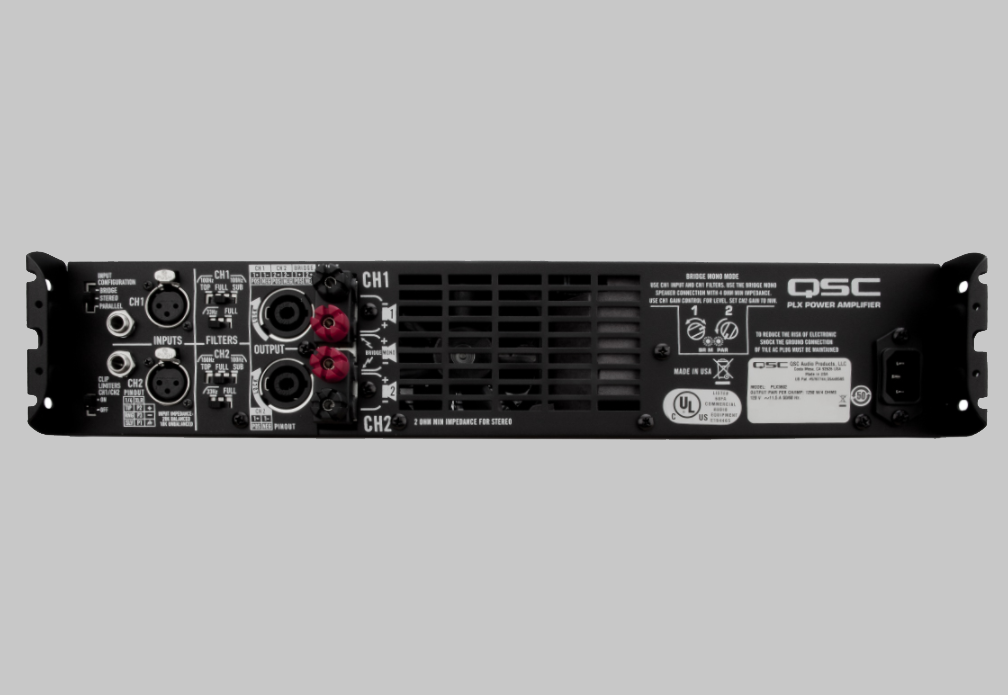 兩個Speakon?NL4輸出連接器提供正鎖定揚聲器連接。上連接器在所有四個電極(通道1:1+,1-;通道2:2+,2-)上提供兩個通道輸出,用于橋接單聲道或用于單電纜連接到雙放大揚聲器。